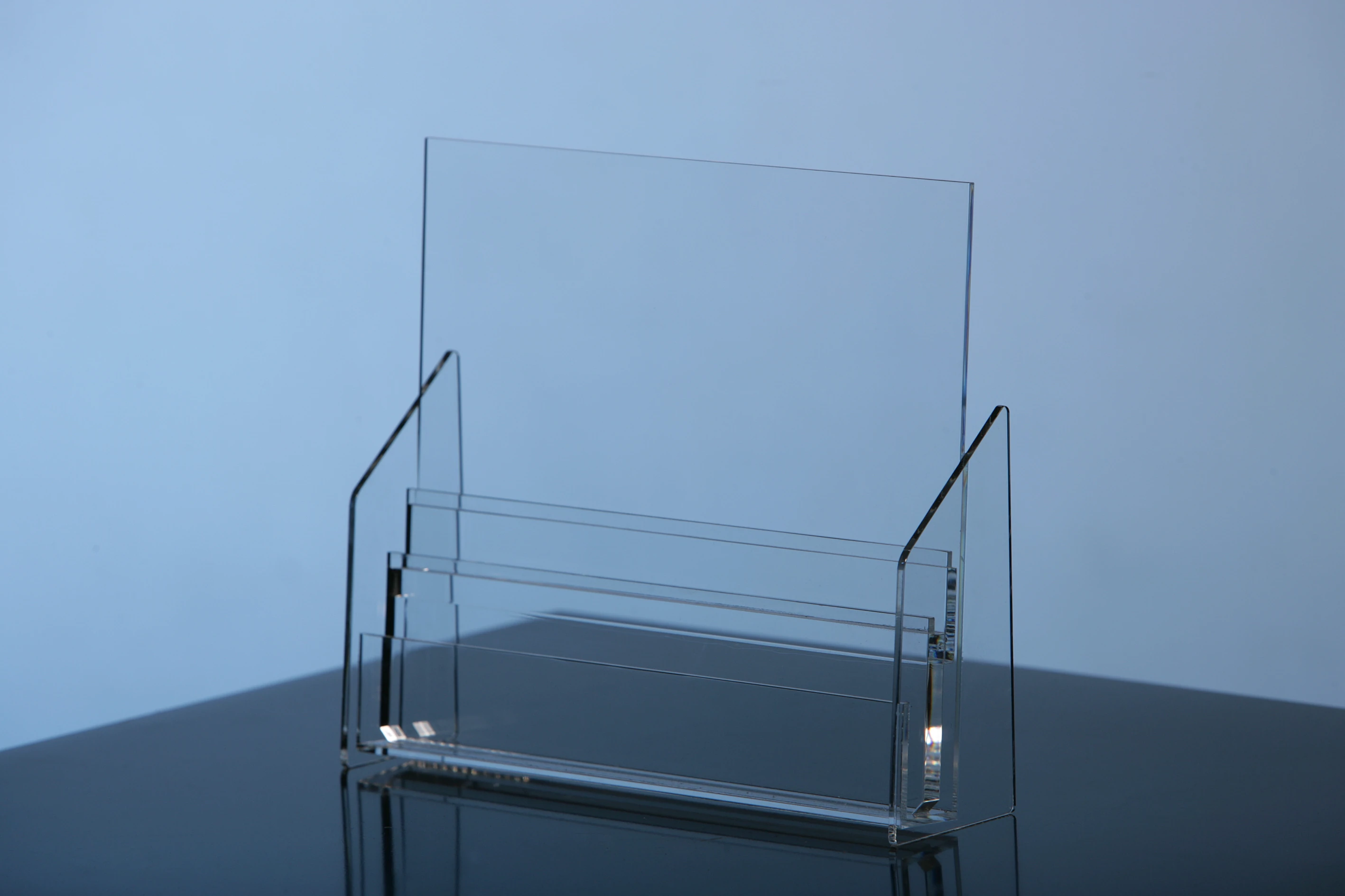 Prospektständer aus Acrylglas zur Präsentation Ihrer Werbebroschüren im Eingangsbereich von Ladenlokalen, Hotels oder an Informationsständen.